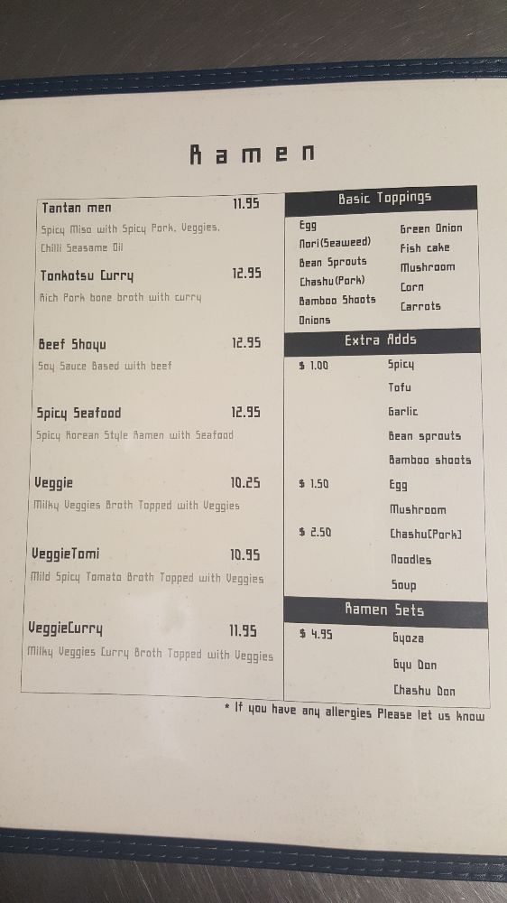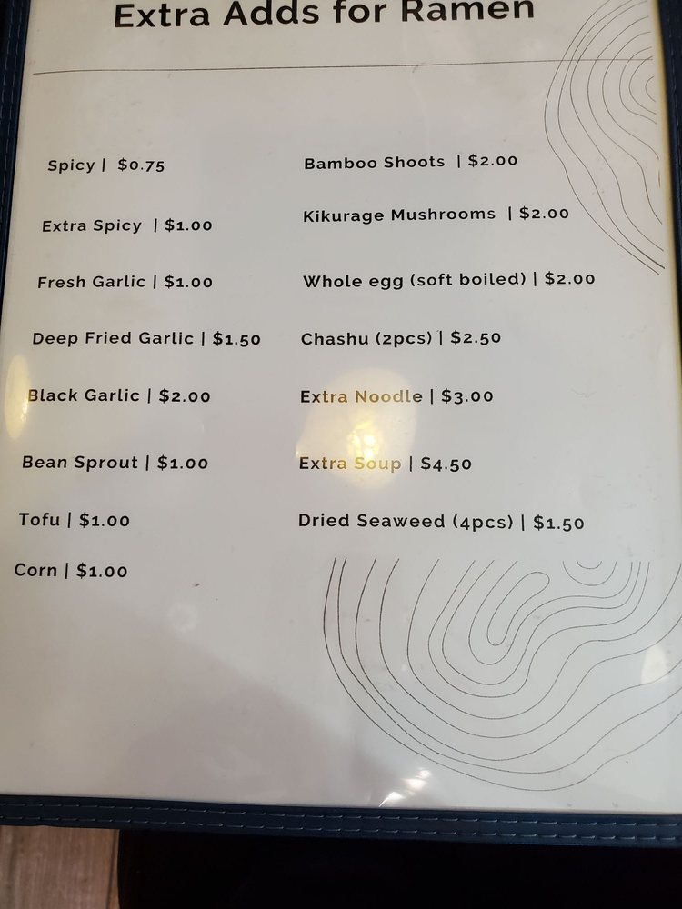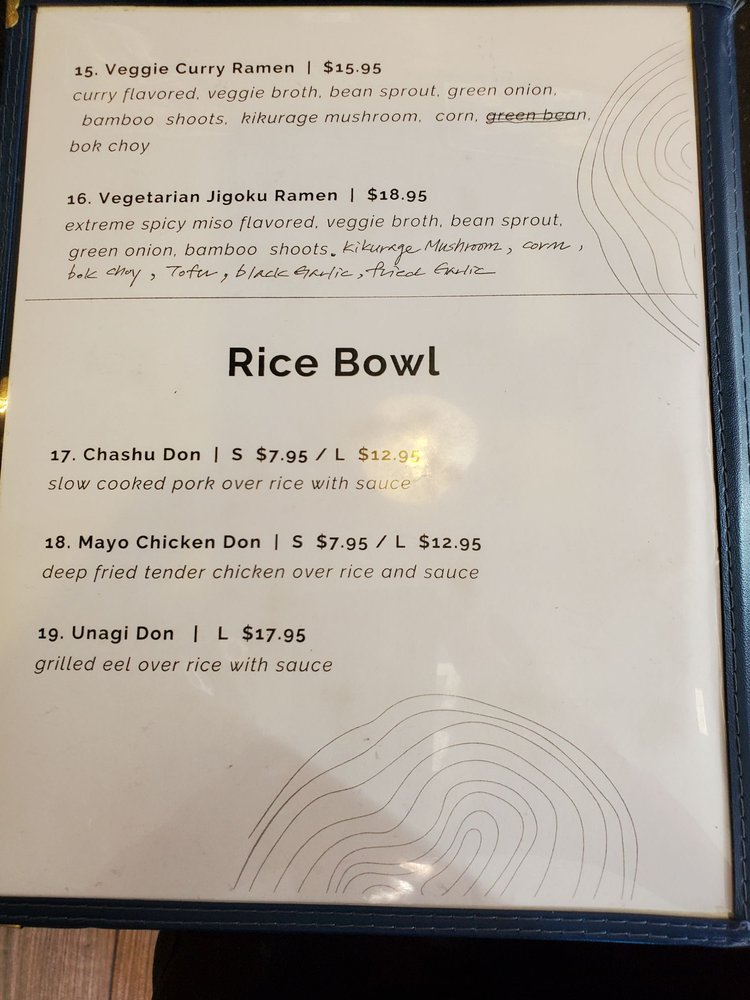 Korean style spicy tofu flavored,pork broth,bean sprout,green onion,bamboo shoots, soft tofu,mushrooms,corn,2pcs chashu,half egg